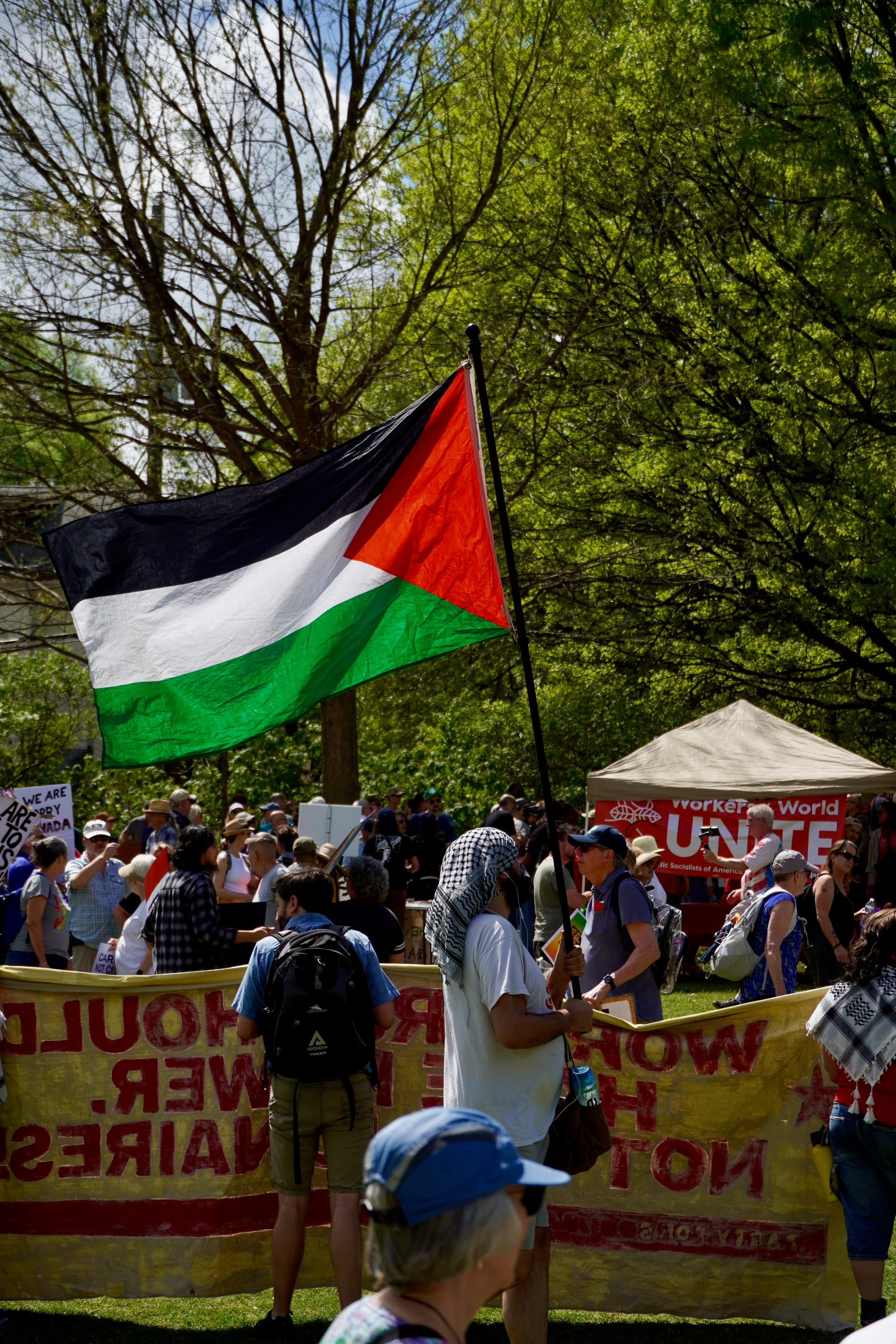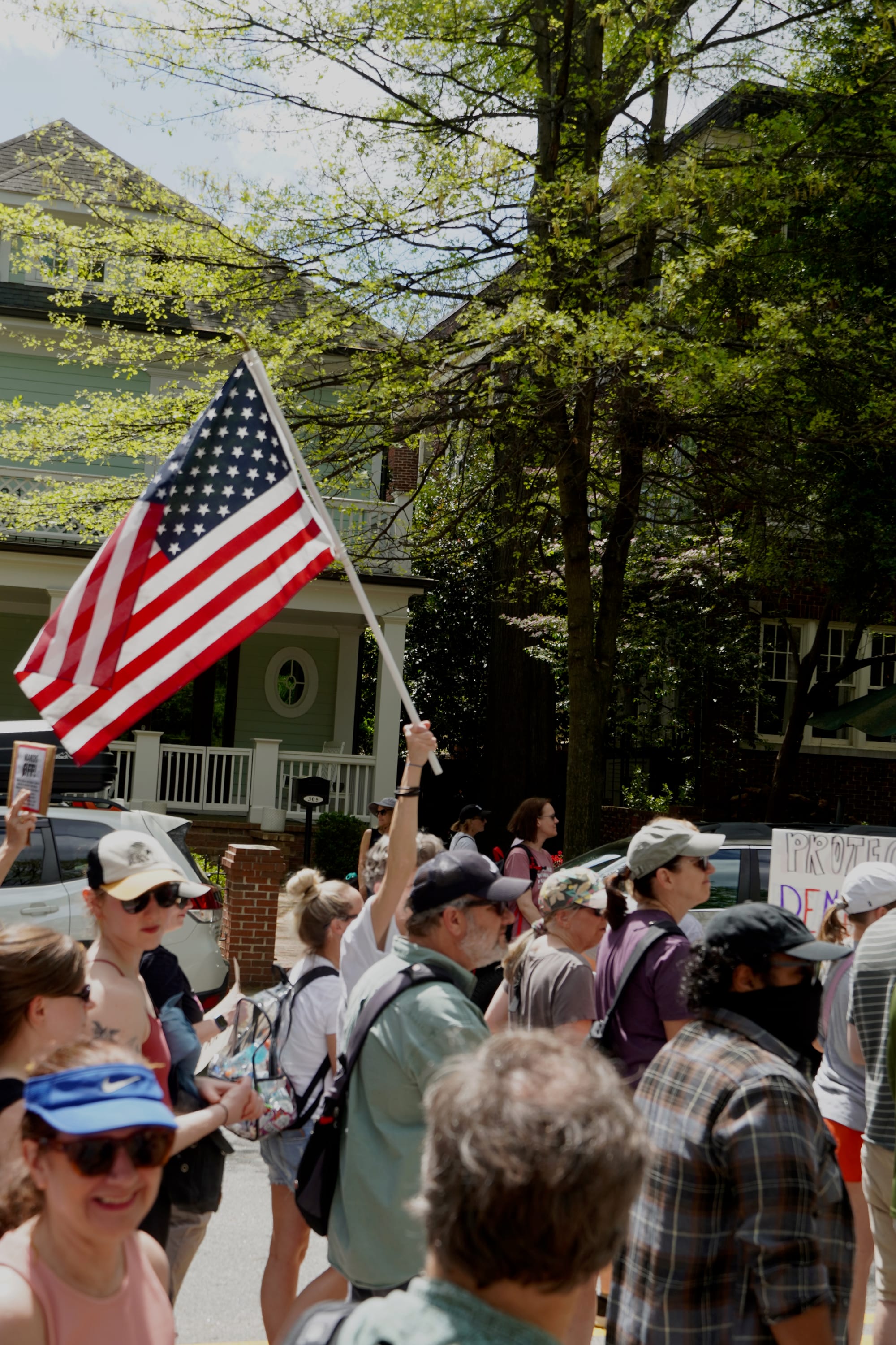 One frame that really stood out to me was this one where we see the American flag flipped and draped across this person. This is one of those shots that a past me would've cut since it's slightly out of focus but I've grown to love the raw filmic quality of it. It reminds me of the classic pieces of photojournalism you see from protests and war photography.