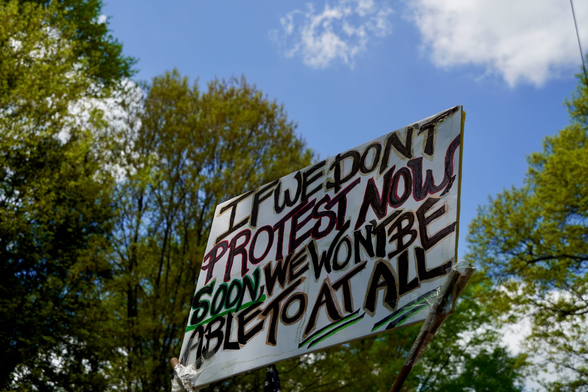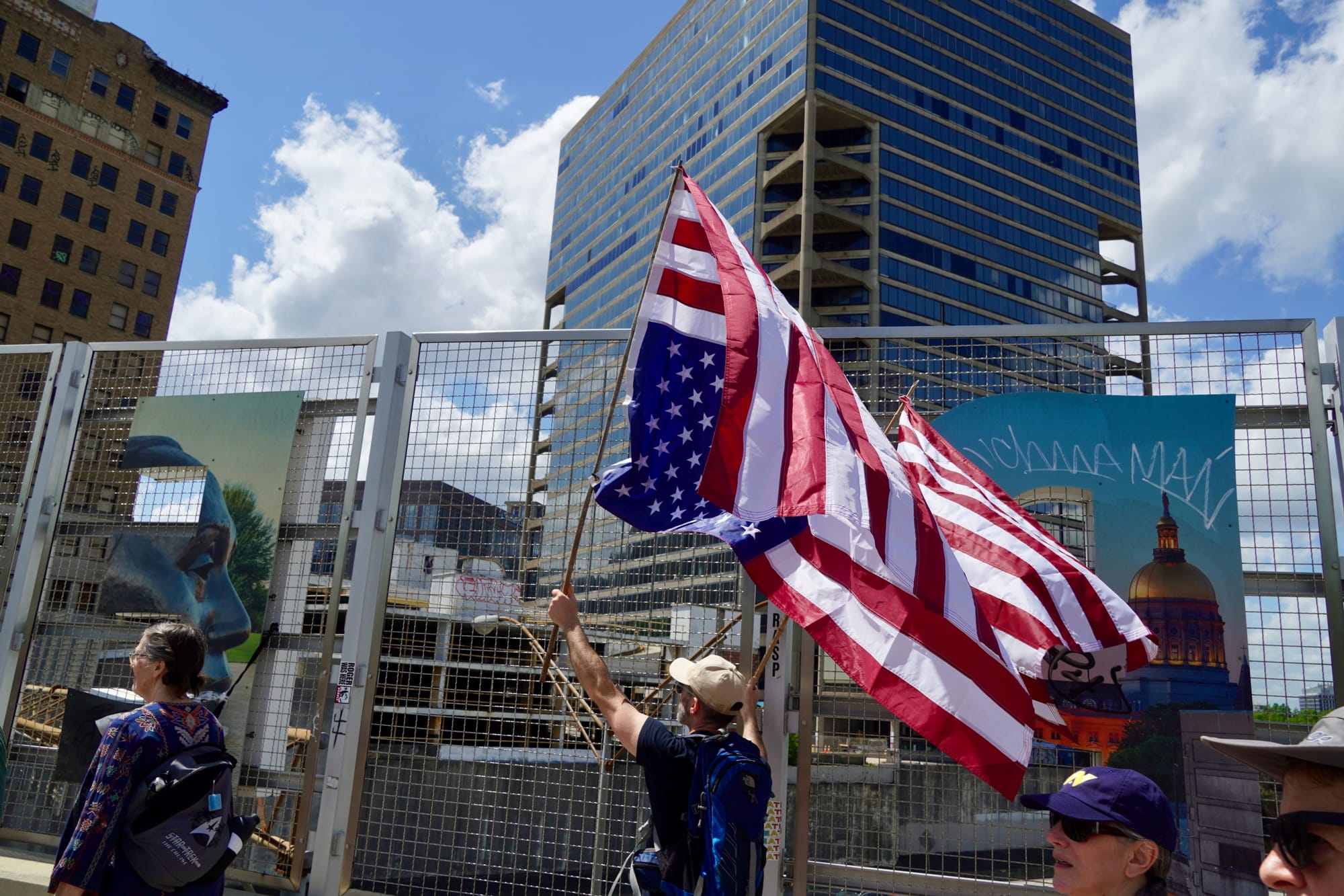 It's hard not to protest in Atlanta without thinking about the Civil Rights Movement, particularly icons like John Lewis and Martin Luther King Jr. that have defined this city for so long. Seeing this protest cross a portrait of Lewis on a lamppost made me reflect a bit on what he would think about this unrest and if he would've been on the streets with us as well.