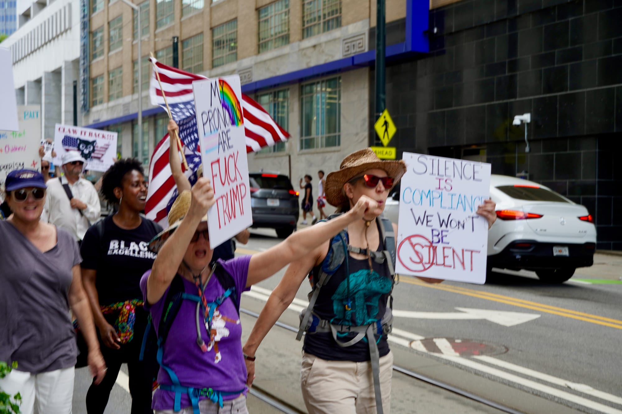 The only way you could've gotten an accurate picture of how deep the crowds went at Piedmont Park was with a drone. It seemed like an endless array of people were in attendance - young, old, and everything in between. Though I felt that it got a bit repetitive to shoot in the same park environment while trying to obscure any identifying characteristics for any one person, I think that I got a few good shots. I continue to be amazed by the creativity of people's signs as well.
