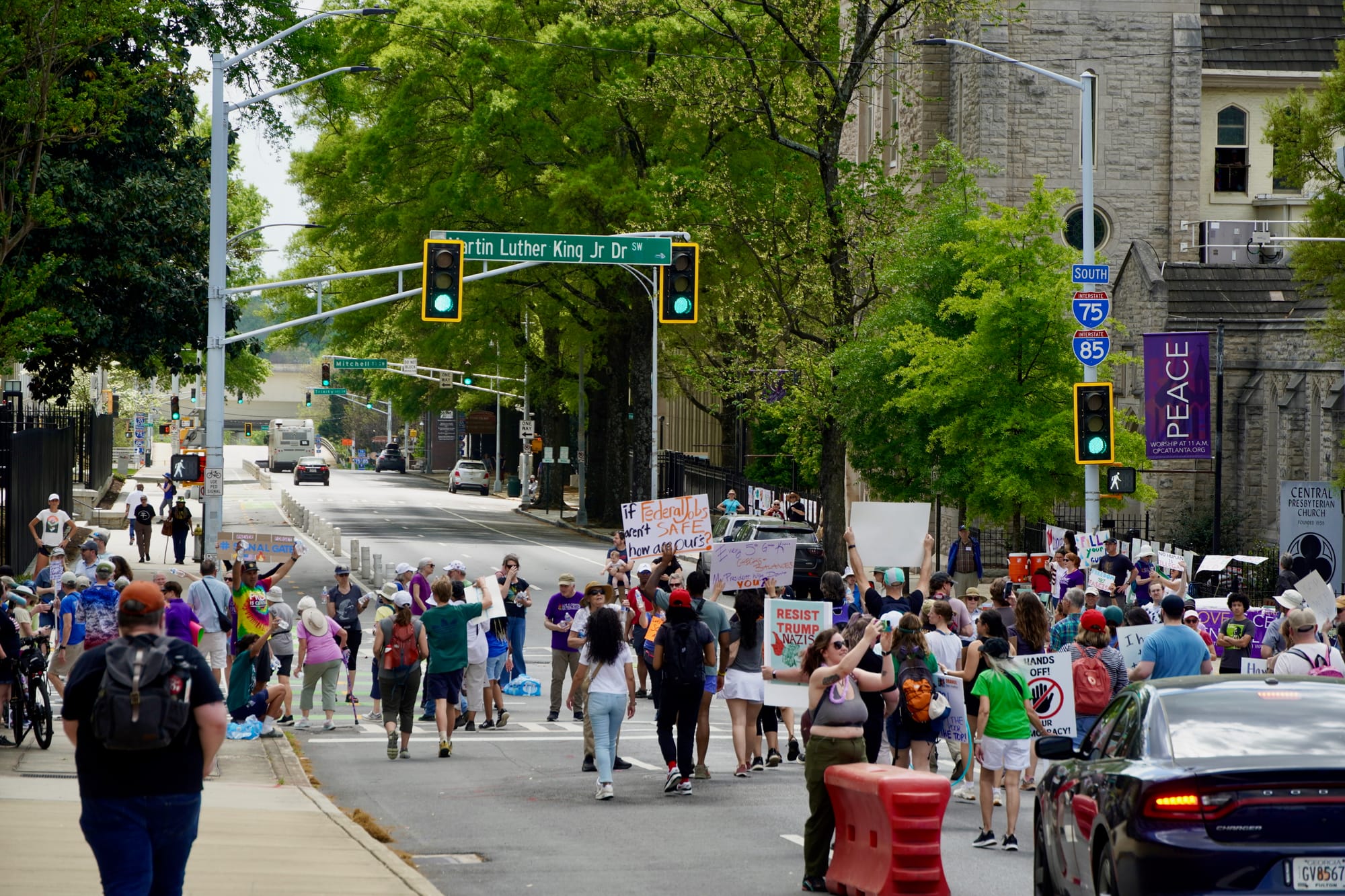 After a few opening remarks and reminders to keep things nonviolent, it was time to take the action to Peachtree Street for the roughly three mile march to the State Capitol.