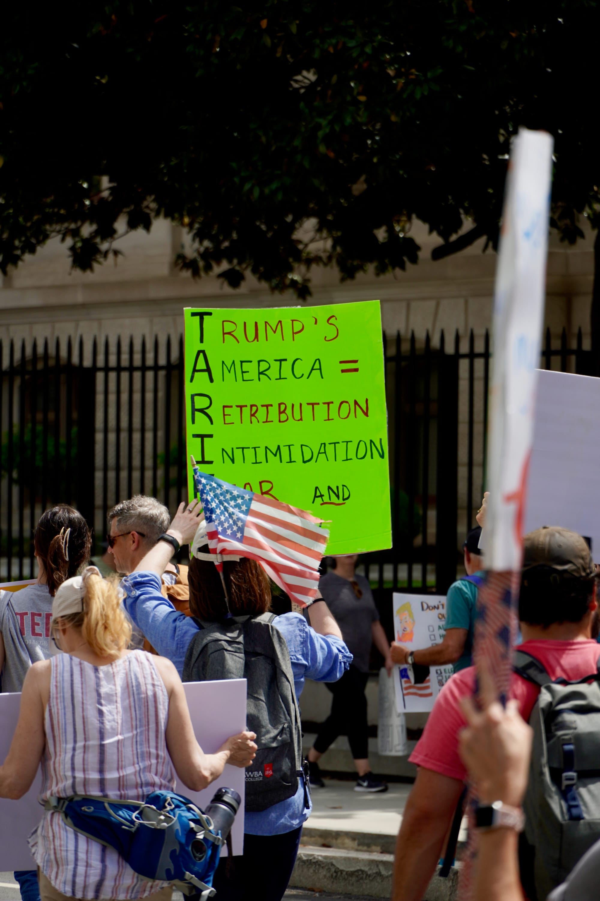 One thing that struck me was the seeming patriotism abound. The American flag was a common motif (sometimes flipped upside down) but it gave me a tinge of hope that the country was not only worth saving, but also could be saved from this tyrannical streak.